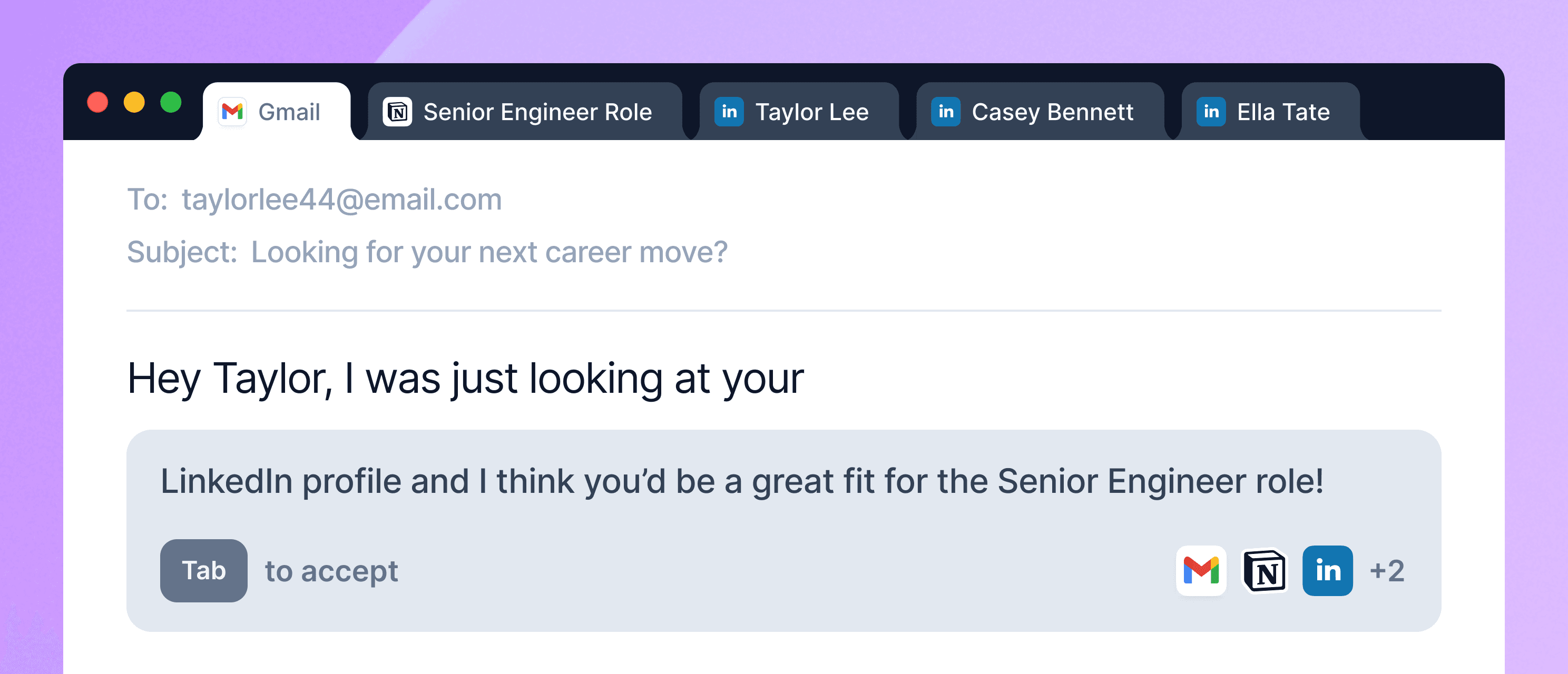 Ventrilo can help write emails for you by using context from your active tabs, uploaded documents, and personal preferences to craft spot-on sentences as you type.