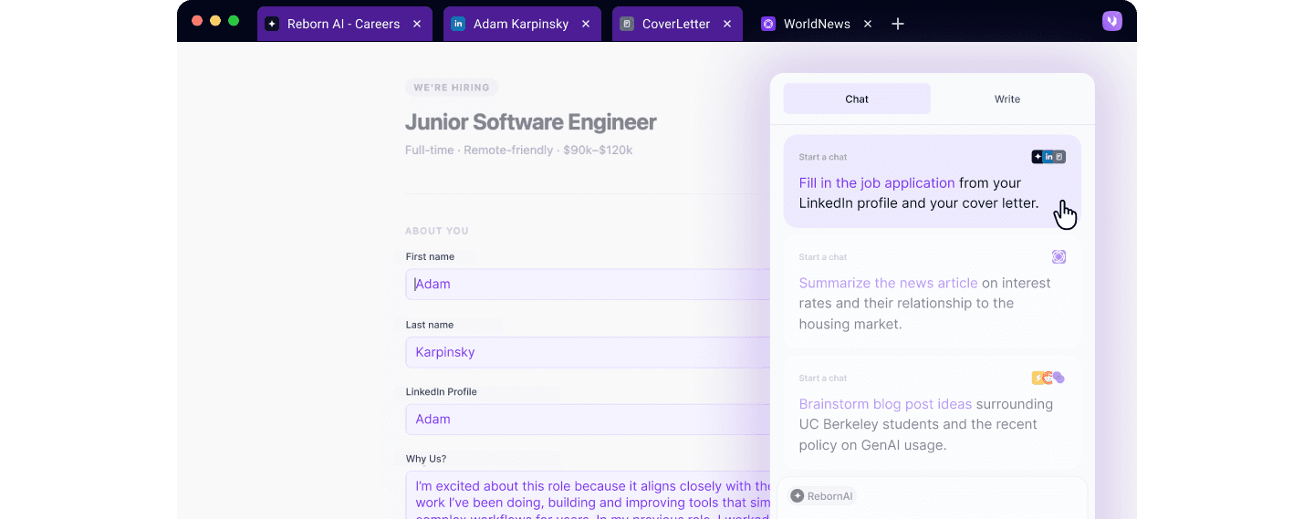 Draws from your active tabs and personal preferences to craft spot-on sentences as you type.